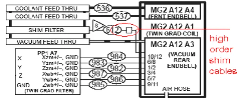 Because there is no high order shim option on this site, we cut the high order shim cable. We peel off the cables separately and bind up each of the cables using the insulated adhesive tape. Palauta kaikki, suorita EPT white pixel scan. Kaikki kulkevat. Tämän paikallisen korjauksen jälkeen järjestelmä on kunnossa. There is no white pixel as before on DWI and Fiesta image.